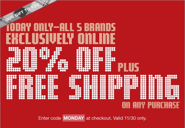 Get some hot Old Navy & Gap deals today for Cyber Monday! You can get 20% off by using the code Monday and get 20% cash back from ShopAtHome! Remember this is a double rebate day for some stores, so it will show 10% cash back but you will get 20% back!